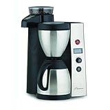 The Capresso CoffeeTEAM Therm is the only Coffee Maker/Grinder combination with a Thermal Carafe and Conical Burr Grinder. The completely new CoffeeTEAM Therm features a stainless steel thermal carafe to keep you coffee perfectly fresh, aromatic and hot for hours, without reheating. A stainless steel housing and simple on-button programming design with a new black-on-white illuminated display make this the most sophisticated Coffee Maker/Burr Grinder combination. With patented technology the CoffeeTEAM Therm grinds a programmed amount of beans directly into filter, then automatically swings forward and starts the brewing process. Simple, one-button programming design allows programmable coffee amounts for 4, 6, 6, 8 and 10 cups in mild, medium and strong strength. Read more