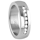 316L stainless steel high polish Ring with clear cubic zirconia stones all around.Width : 7mm Read more