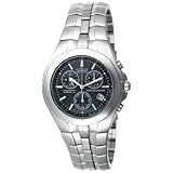 This men's Eco-Drive timepiece is powered by light, so it never needs a battery. The sculpted stainless steel bracelet bears the flawless execution on your wrist. The deep blue dial presents large, polished markers, luminous hands and a date indicator. Other features include 12/24 time, dual time, alarm, perpetual calendar, and 1/20 second chronograph with measurement up to 60 minutes. The screw-back case provides you with 100M of water resistance. Read more