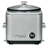 Cuisinart 8 Cup Rice Cooker has a brushed stainless housing and embossed Cuisinart logo. Makes 8-15 cups of rice. Traditional Lever control with warm and cook settingsHealthy cooking and sleek modern design meld in this rice cooker from Cuisinart. Finished in a handsome brushed stainless steel, the square cooker features rounded corners, chrome-plated handles, and a glass lid with a stainless rim, chrome knob, and steam vent hole. Inside you'll find a high-quality, stainless-steel steaming basket and a nonstick cooking bowl that produces 8 to 15 cups of rice. The cooker also steams vegetables and thin cuts of meat, creating a complete, fat-free meal with little effort. Besides various types of rice, the cooker cooks couscous, polenta, oatmeal, boiled eggs, shrimp, and much more. An included booklet presents gourmet recipes for such mouth-watering meals as Creamy Parmesan Risotto with Asparagus, and Teriyaki Steamed Chicken with Cranberry Wild Rice.